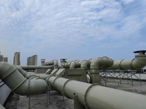 實驗報告室直接排放物 → 活性酶炭濾過器 → 引高壓離心風機 → 直接排放